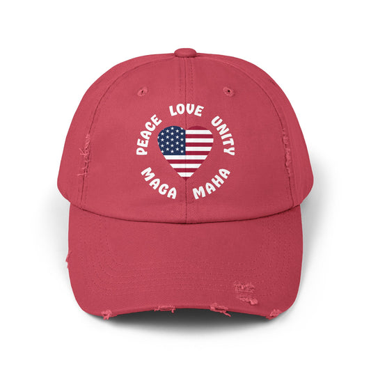 PEACE LOVE UNITY MAGA MAHA Distressed Cap