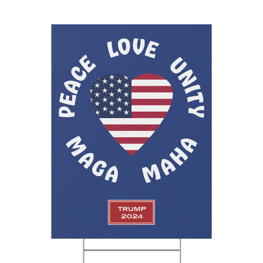 PEACE LOVE UNITY MAGA MAHA (yard sign)